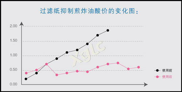 化验数据表明,使用食用油滤纸对抑制煎炸油酸价的增高起到了明显的作用,对改善煎炸环境,提高产品质量,延长产品的保质期具有重要意义。